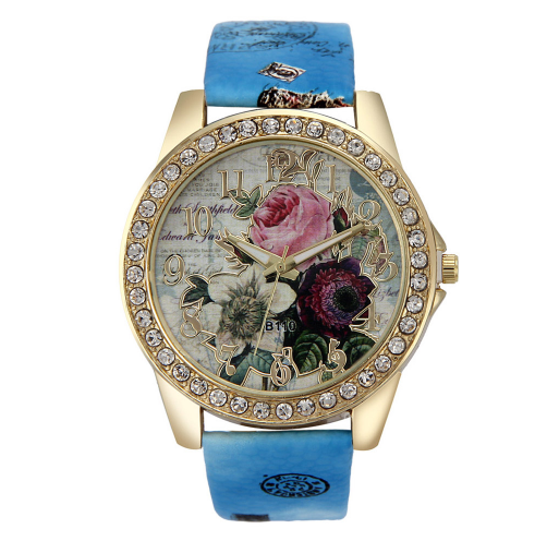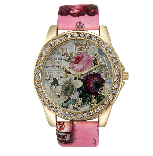 1X2016 New Fashion Chinese Style Peony Pattern Watch Gilt Digital Quartz Casual Leather Clock Women Dress Flower
